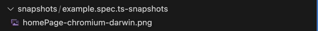 That’s because there is no golden file yet. Though the test failed, Playwright takes the baseline image and saves it under the snapshot directory mentioned under the config file.